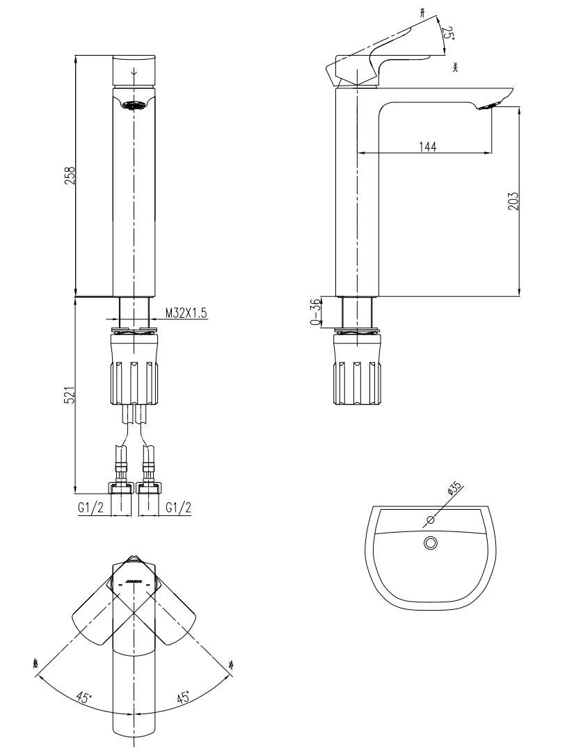 32416-682/1A Vòi Lavabo Rửa Tay Nóng Lạnh JOMOO